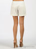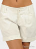 Шорты с отворотами расклешенного покроя. Выпалены из качественных, натуральных материалов. Широкий отрезной пояс, есть шлевки для ремня. Застегиваются на молнию и пуговицу. Два втачных кармана спереди, два прорезных сзади.