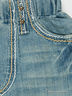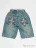 Стильные шорты из хлопкового денима. Пояс на резинке со шлевками для ремня. Два накладных кармана сзади с эффектной вышивкой и стразами. Модель декорирована потертостями и контрастными швами.
