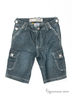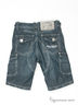 Детали: отрезной пояс со шлевками для ремня, с внутренней стороны пояса резиновая регулировка объема талии, застежка на кнопку и молнию, два прорезных кармана спереди, два накладных с клапанами сзади, два кармана на брючинах, контрастные швы.