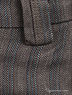 Детали: отрезной пояс со шлевками для ремня, застежка на пуговицу и молнию, два прорезных кармана спереди, два прорезных-с листочкой сзади, принт полоска.