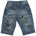 Модель прямого кроя с множеством карманов. К поясу пришиты шлевки. Декоративные аппликации, эффект потертости.
