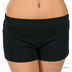 Женские трикотажные шорты. Посажены на широкий пояс-резинку. На задней части шорт выполнена кокетка.