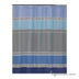 Яркие и необычные по форме предметы изготовлены из керамики и украшены изящным орнаментом в виде решетки. Низ предметов акцентирован широкой голубой полосой. Орнамент повторяется на шторке, коврике и жаккардовых полотенцах.