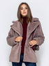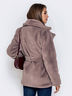 Укороченная шуба, выполненная из полированного искусственного меха с тонкой подкладкой из нейлона. Модель с объемными остроугольными лацканами, дополнена диагональными прорезными карманами на полочке. Застегивается заклепками с петлями. В комплекте пояс из основного материала. Изделие рассчитано на температурный режим от +5°С.