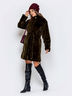 Удлиненная шуба из искусственного полированного меха, выполненная методом поперечного кроя. Изделие с высоким воротником-стойкой на пуговице. Полочка дополнена прорезными карманами для удобства в носке. Застегивается петельками-застежками по всей длине. Дополнена поясом из основного материала. Изделие рассчитано на температурный режим от +5°С.