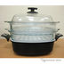 Двухъярусная пароварочная система из стекла квадратной формы. Имеет по две ручки на каждом ярусе. Благодаря ей Вы получаете возможность готовить без жира и масла, а так же в продуктах приготовленных на пару сохраняется больше витаминов, чем при других способах тепловой обработки. Просто в использовании.