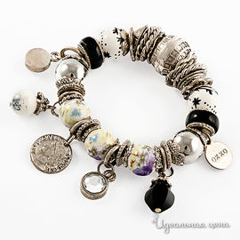 Браслет с черными кристаллами, подвеской-"бомбой"