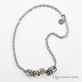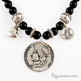 Колье с розовыми и лиловыми бусинами и подвеской-диском