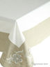 Скатерть из белого плотного (190GMS) мягкого хлопка, отделанная широким серо-бежевым присоединенным краем , по углам вышивка петельчатым швом и аппликация из фетровых цветов. Размер: 150X180 см.