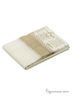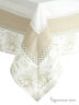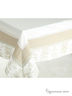 Скатерть из плотного мягкого хлопка (190GSM) молочного цвета со сложным присоединенным краем из бежевой, клетчатой тканей и ткани с принтом "надписи". Размер: 160x220 см.