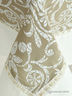 Бежевая плотная (190GMS) скатерть с цветочным белым рисунком, с белым широким присоединенным краем и отделкой хлопковой тесьмой с продетой шелковой лентой. Размер: 160х220 см.