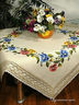 Великолепная скатерть из полиэстера, выработка под лен. По всему краю пришита тесьма с имитацией ручной обвязки. А по всей скатерти вышитые вручную цветы в ярких тонах. Эта скатерть не останется не заметной в Вашем доме и по истине будет изысканным украшением, которое можно передавать из поколение в поколение! Изделия из полиэстера легко стирать: они не мнутся, не садятся и быстро сохнут, они более долговечны, чем изделия из натуральных волокон.