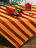 Скатерть из плотного и тяжелого полиэстера. Очень хорошо держит форму. Чередующие полоски из горчичного цвета и атласных полос. Изделия из полиэстера легко стирать: они не мнутся, не садятся и быстро сохнут, они более долговечны, чем изделия из натуральных волокон.