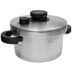 Скороварка. Скороварка изготовлена из нержавеющей стали с идеальным сочетанием в сплаве таких химических элементов, как железо, углерод, хром, никель. Это самый универсальный и оптимальный по своим качественным и гигиеническим характеристикам материал, который отвечает всем современным требованиям, предъявляемым к посуде. Скороварка имеет оптимальную толщину стенок и дна, идеально подогнанные крышки и изготавливается по уникальной технологии.