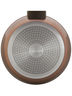 Сковорода из кованного алюминия 18 см, толщина стенок и дна 3 мм, 3х-слойное антипригарное покрытие. Индукционное дно. Рукоятка: коричневый матовый пластик Soft-Touch с хромированной заглушкой. Внутреннее и внешнее покрытие: коричневый перламутр, огнеупорное. Подходит для всех типов плит. Можно мыть в посудомоечной машине.