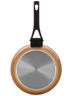 Сковорода из кованого алюминия 20 см, толщина стенок и дна 3 мм, 3х-слойное антипригарное покрытие. Полностью индукционное дно. Рукоятка черная, изготовленная из мягкого на ощупь пластика с хромированной заглушкой и матовой поверхностью Soft-touch. Внутреннее покрытие черное, внешнее золотисто-медное. Подходит для всех типов плит. Можно мыть в посудомоечной машине.