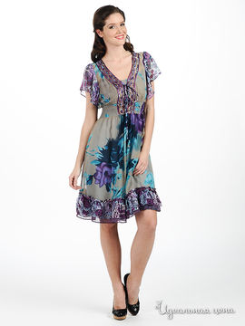 Платье Мультибренд женское, цвет фиолетовый / бежевый / голубой