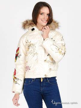 Пуховик Ed Hardy женский, цвет жемчужно-белый