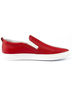 Слипоны на сплошной подошве с круглым мысом. Спереди эластичные вставки контрастного цвета.
