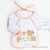 Яркий слюнявчик из махровой ткани с рукавами на резинке. Завязывается на шее на ленточки. Подкладка из клеенчатой ткани. Слюнявчик декорирован ярким набивным рисунком.