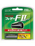 Усовершенствованная бритвенная система Fsystem-F II neo более 30-ти лет пользуется огромной популярностью на рынке Японии. Благодаря сочетанию никелированных блестящих и матовых черно-серых тонов, станок обладает сдержанным стильным дизайном. Удобная нескользящая рукоятка позволяет станку плотно и надежно лежать в руке. Супертонкие лезвия системы из нержавеющей стали (толщина: 0,1 мм) покрыты платиновым сплавом и двойным смолистым напылением, что обеспечивает увеличенный срок их эксплуатации, повышает остроту и улучшает качество бритья. В процессе бритья со специальных окошек выделяется пропитка с витамином Е, которая улучшает скольжение, а также ухаживает за поверхностью кожи. Лезвия очищаются одним нажатием кнопки.