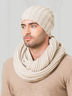 Модный молодежный двойной снуд-восьмерка. Выполнен рельефной вязкой "английская резинка" из итальянской шерстяной пряжи, украшен металлической фирменной шильдой. Сочетается с шапками: Селия, Роберта, Берлин, Токио, Аляска.