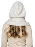 Стильный снуд-капюшон (капор) имеет в составе 70 % натуральных волокон. Одновременно выполняет функцию головного убора и снуда. Спереди имеет навесную петлю и дополнительно застегивается на пуговицу.