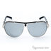 Стильные солнцезащитные очки в оправе из металла. Рамка выполнена с узорами. Оригинальное дизайнерское решение в виде металлической накладки у основания заушника. Заушник выполнен из глянцевого пластика черного цвета. Наконечник слегка изогнутой формы, декорирован маленькой вставкой. Линзы из высококачественного пластика, темно-серого цвета.