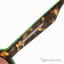 Оригинальные очки в пластиковой оправе с леопардовым принтом и легким градиентом. По контуру оправы и заушников проходит полоска зеленого оттенка. Интересные по своему дизайну заушники декорированы металлической вставкой с надписью united colors of benetton.