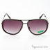 Стильные очки актуальной формы с градиентными линзами и в глянцевой пластиковой оправе серого цвета. Переносье, окантовка оправы и тонкие заушники выполнены из темно-коричневого металла. На заушниках – гравировка united colors of benetton. Наконечники заушников из серого глянцевого пластика дополняют дизайн этих очков.