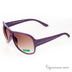 Стильные очки в фиолетовой оправе из глянцевого пластика. Переносье и заушники украшены тонкой розовой полоской. У основания заушников - надпись розового цвета united colors of benetton.