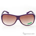 Стильные очки в фиолетовой оправе из глянцевого пластика. Переносье и заушники украшены тонкой розовой полоской. У основания заушников - надпись розового цвета united colors of benetton.