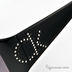 Стильные очки в черной оправе с фиолетовыми линзами. Широкий заушник украшен металлическими клепками надписью CK.