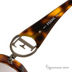 Элегантные очки от Gianfranco Ferre. Оправа и заушники выполнены из пластика благородного коричневого оттенка с актуальным принтом. Основание заушников декорировано металлической вставкой со стразами и крупной буквой F в центре.