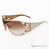 Модные очки с монолинзой. Оправа выполнена из золотистого металла. Широкое основание заушников украшено металлической вставкой - логотипом и крупными стразами. Сочетание цветов и фактур делает эту модель очков актуальной и уместной практически для любого гардероба.
