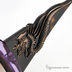 Элегантные очки в пластиковой оправе. Рамка выполнена с разноцветным принтом. Оригинальное дизайнерское решение в виде металлической накладки с изображением дракона. Заушник имеет утолщенную форму у основания. Наконечник слегка изогнутой формы. Линзы из высококачественного пластика.