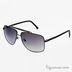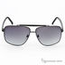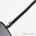 Солнцезащитные очки в тонкой металлической оправе черного цвета. Оригинальный дизайн мостика. Пластиковая накладка на декоративной рамке сочетается с рельефными пластиковыми заушниками. Внутренняя поверхность заушников выполнена из глянцевого пластика. Левый заушник украшен надписью Lacoste из металлических букв. Серые линзы с легким градиентом.