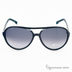 Модные солнцезащитные очки в двухцветной оправе из глянцевого пластика. Внешняя поверхность темно-синего цвета дополнена серо-синим с внутренней стороны. Рамка и заушники с белой окантовкой. Оригинальный дизайн мостика. Линзы с легким градиентом. У основания левого заушника надпись металлическими буквами Lacoste.
