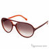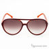 Модные солнцезащитные очки в двухцветной оправе из глянцевого пластика. Внешняя поверхность бордового оттенка дополнена оранжевым цветом с внутренней стороны. Оригинальный дизайн мостика. Линзы с градиентом коричневого цвета. У основания левого заушника золотистая надпись металлическими буквами Lacoste.