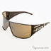 Стильные солнцезащитные очки с поларизованной монолинзой. Металлическая декоративная рамка с тонким мостиком сочетается с пластиковыми заушниками коричневого цвета. Заушники украшены белыми полосами и надписью Les Copains.