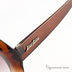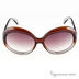 Оригинальные женские очки из глянцевого пластика округлой формы. Нижняя часть рамки выполнена из полупрозрачного пластика. Заушники толстые, левый заушник декорирован вставкой в виде логотипа марки. Линзы из пластика темно-коричневого цвета с градиентом.