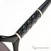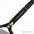 Изящные женские очки в стильной оправе из глянцевого пластика. Основание заушников декорировано рельефным узором и маленькими металлическими вставками золотого цвета. Линзы пластиковые темного цвета, без градиента.
