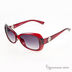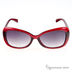Стильные женские очки в пластиковой оправе. Очки рубинового, полупрозрачного цвета. Основание заушников декорировано металлической вставкой в виде логотипа бренда. Линзы пластиковые темно-серого цвета с легким градиентом.
