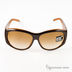 Прекрасные женские очки округлой формы с градиентными коричневыми линзами. Оправа выполнена из пластика цвета молочного шоколада. Заушник декорирован изящным фирменным логотипом марки Montblanc - звездочка золотистого цвета ,по контуру которой «плавает» страз. 100% зашита от ультрафиолета.