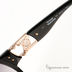Изящные женские очки в стильной оправе из глянцевого пластика. Оригинальное дизайнерское решение в виде металлической накладки - логотипа у основания заушника и стразами. Заушник из пластика с напылением изнутри. Заушник толстой формы у основания, наконечник слегка изогнутой формы.