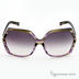 Эффектные солнцезащитные очки в разноцветной пластиковой оправе с переливами от фиолетового до серо-зеленого. Боковые части рамки декорированы металлическими рельефными накладками золотистого оттенка, имитирующими кожу рептилии. Основание полупрозрачных заушников украшено стилизованной надписью Trussardi. На кончиках заушников – накладки с логотипом марки. Линзы с градиентом.