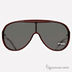 Крупные женские очки с монолинзой в широкой оправе с логотипом «GF FERRE» с тонким двойным металлическим заушником.