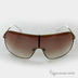 Женские очки с монолинзой в тонкой металлической оправе обтекаемой формы с логотипом «GF FERRE» на заушниках.