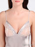 Детали: на тонких регулируемых бретельках, отрезной лиф украшен соблазнительным кружевом, снизу кокетливая прорезь с вставкой из кружева