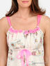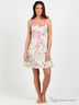 Детали: отрезной лиф на кулиске; трикотажные бретели; оригинальный принт; декоративные тканевые цветы; по бокам разрезы